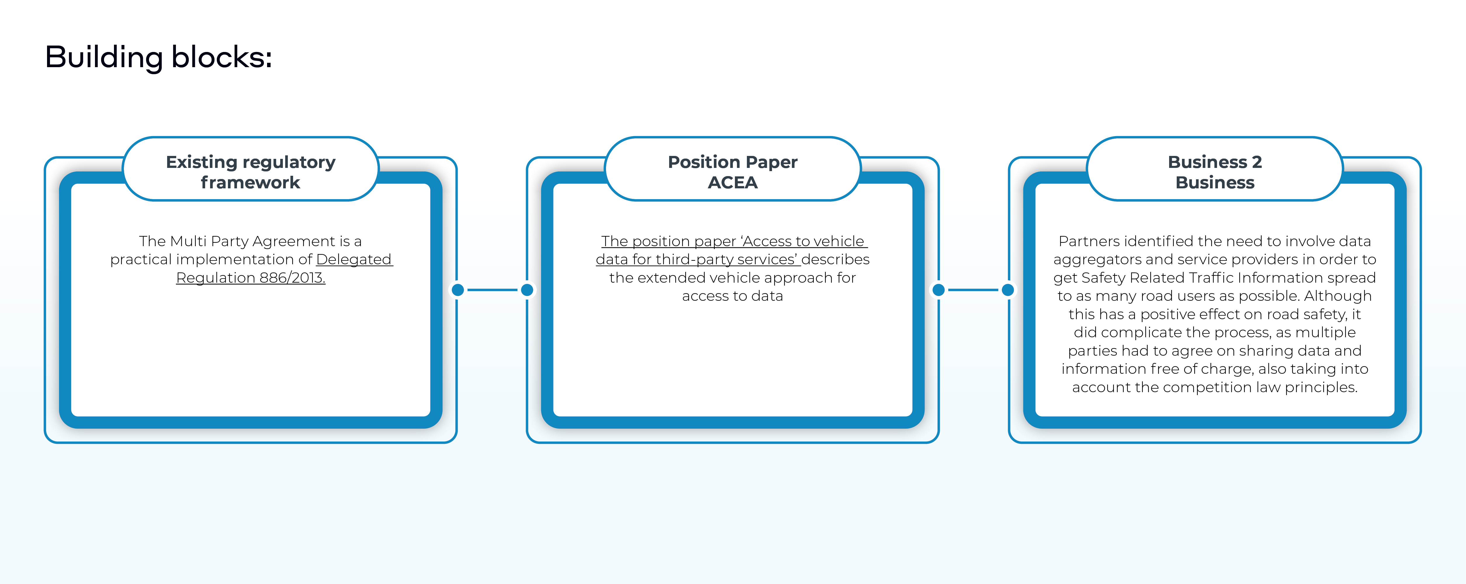 The Safety Related Traffic Information (SRTI) Ecosystem was created by the Data for Road Safety members for the exchange of data and information under the terms and conditions of the Multi Party Agreement and thus creating a trust domain for that exchange.